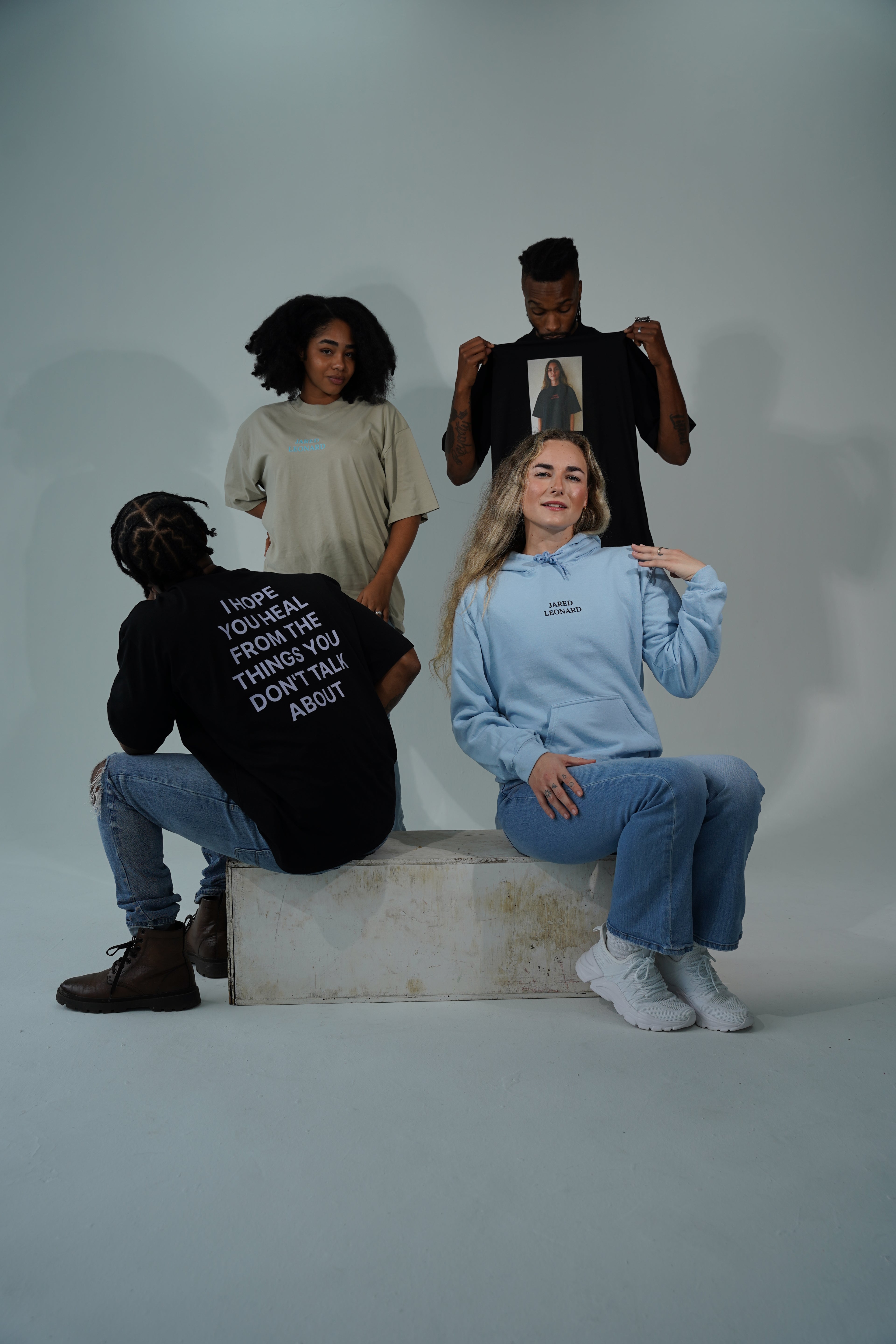 JARED LEONARD HOODIE WHITE TEXT